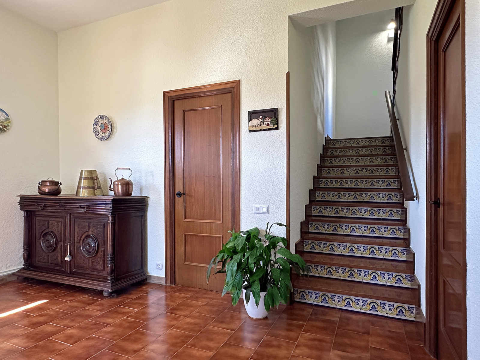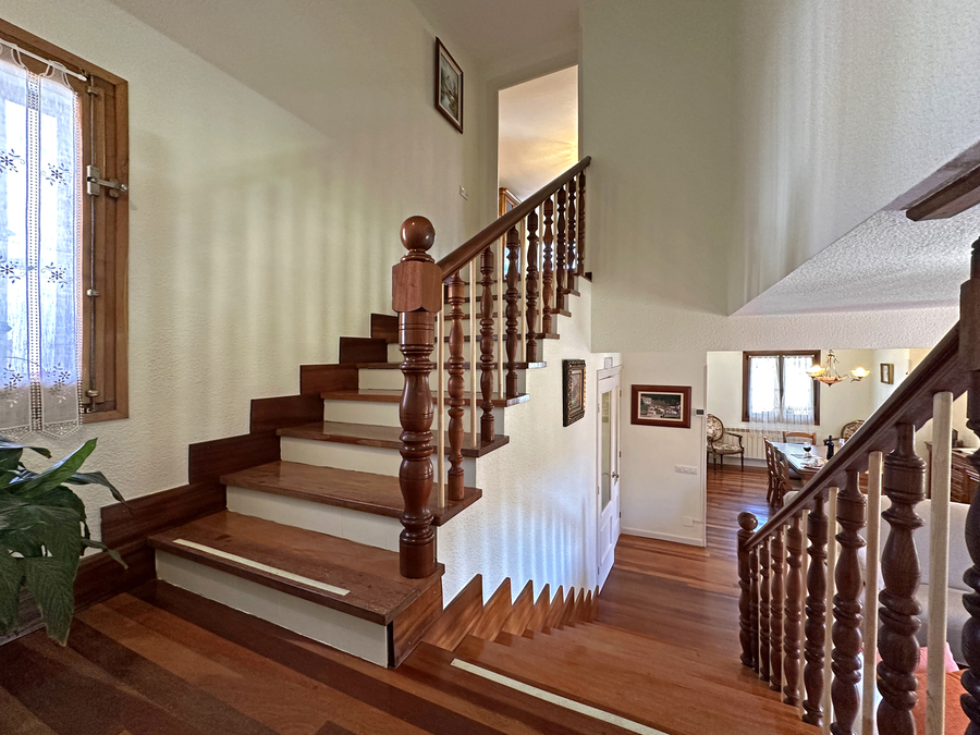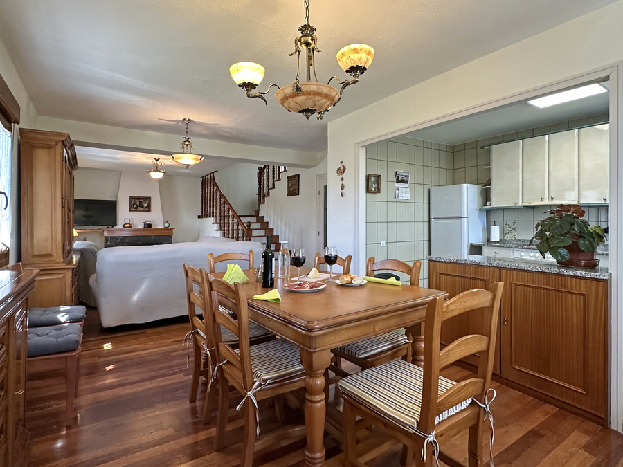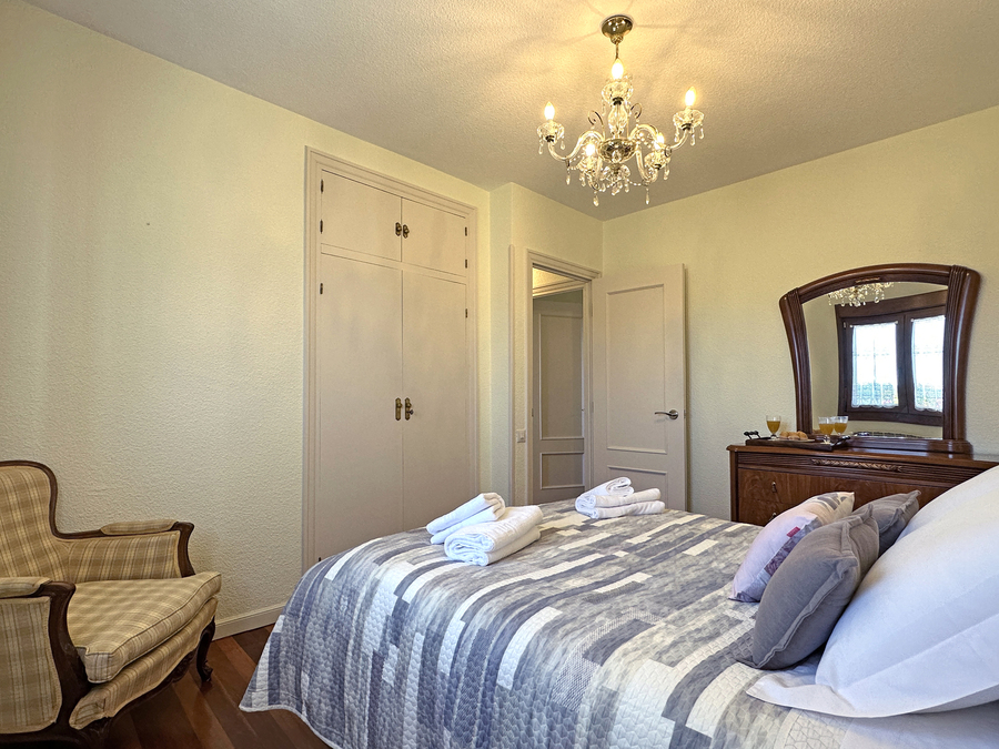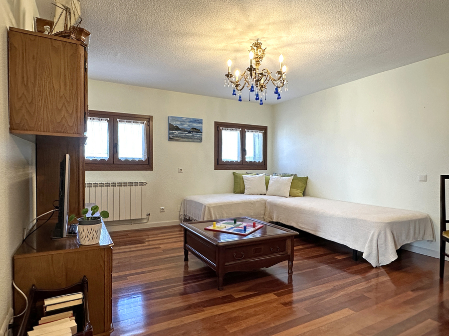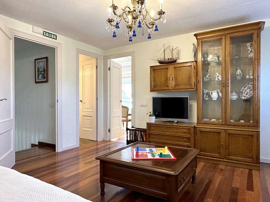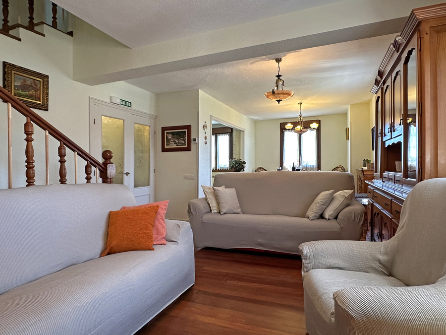 En el salón hay espacio suficiente para que pueda comer todo el grupo. También tiene amplios sofás para disfrutar ante el fuego de la chimenea en los días de más frío. Tenemos una pequeña biblioteca para disfrutar de la lectura, escuchar música, ver la tv u otros elementos de ocio.