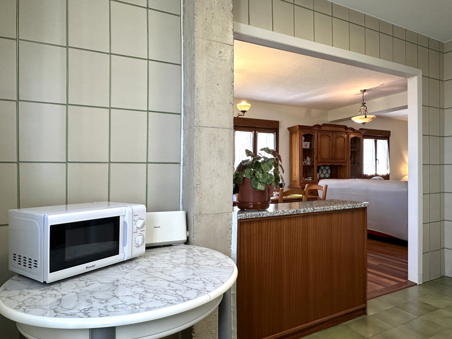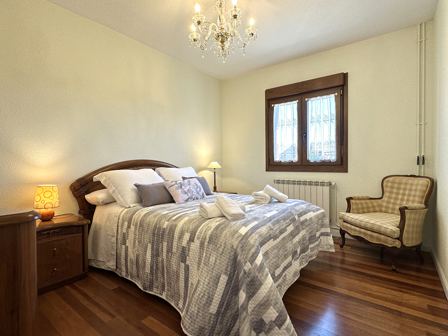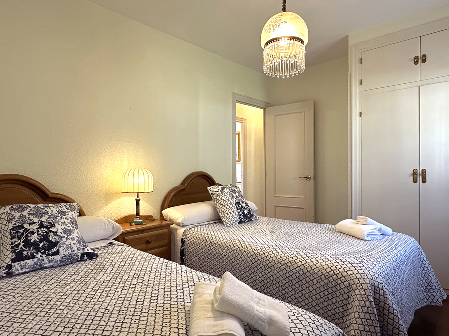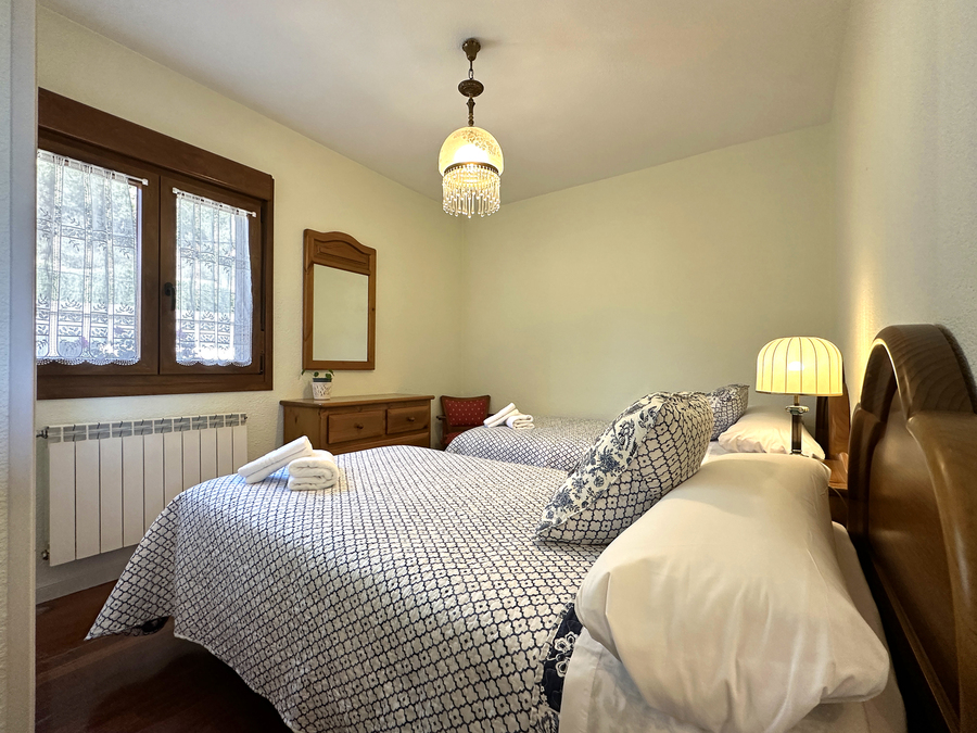 Salón-comedor, cocina junto al salón separada por barra americana, 1 baño, 3 habitaciones dobles, dos de ellas con cama de matrimonio y otra con dos camas.
